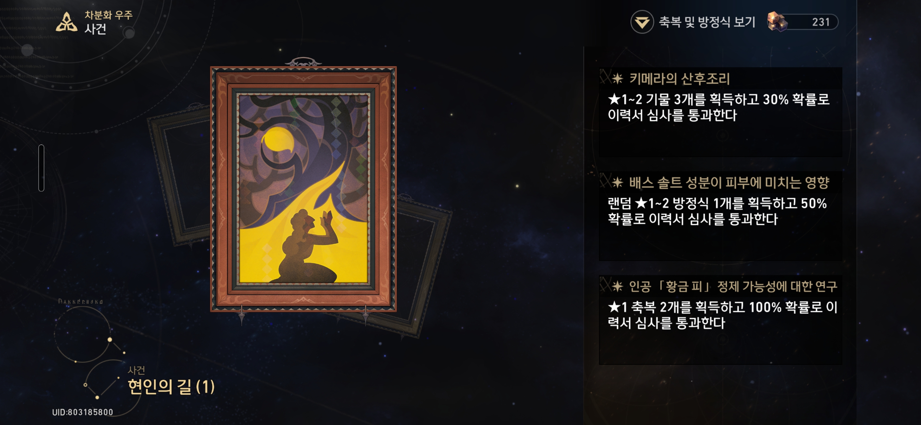 인공 「황금 피」정제 가능성에 대한 연구 - ★1 축복 2개를 획득하고 100% 확률로 이력서 심사를 통과한다