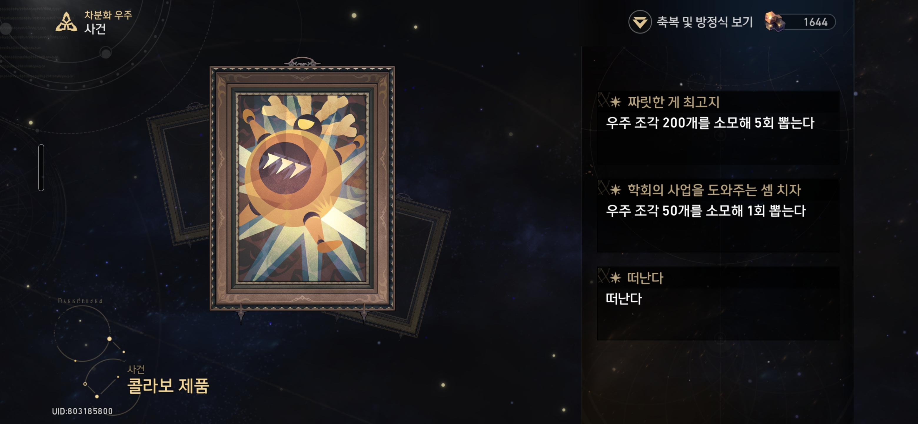 학회의 사업을 도와주는 셈 치자 - 우주 조각 50개를 소모해 1회 뽑는다