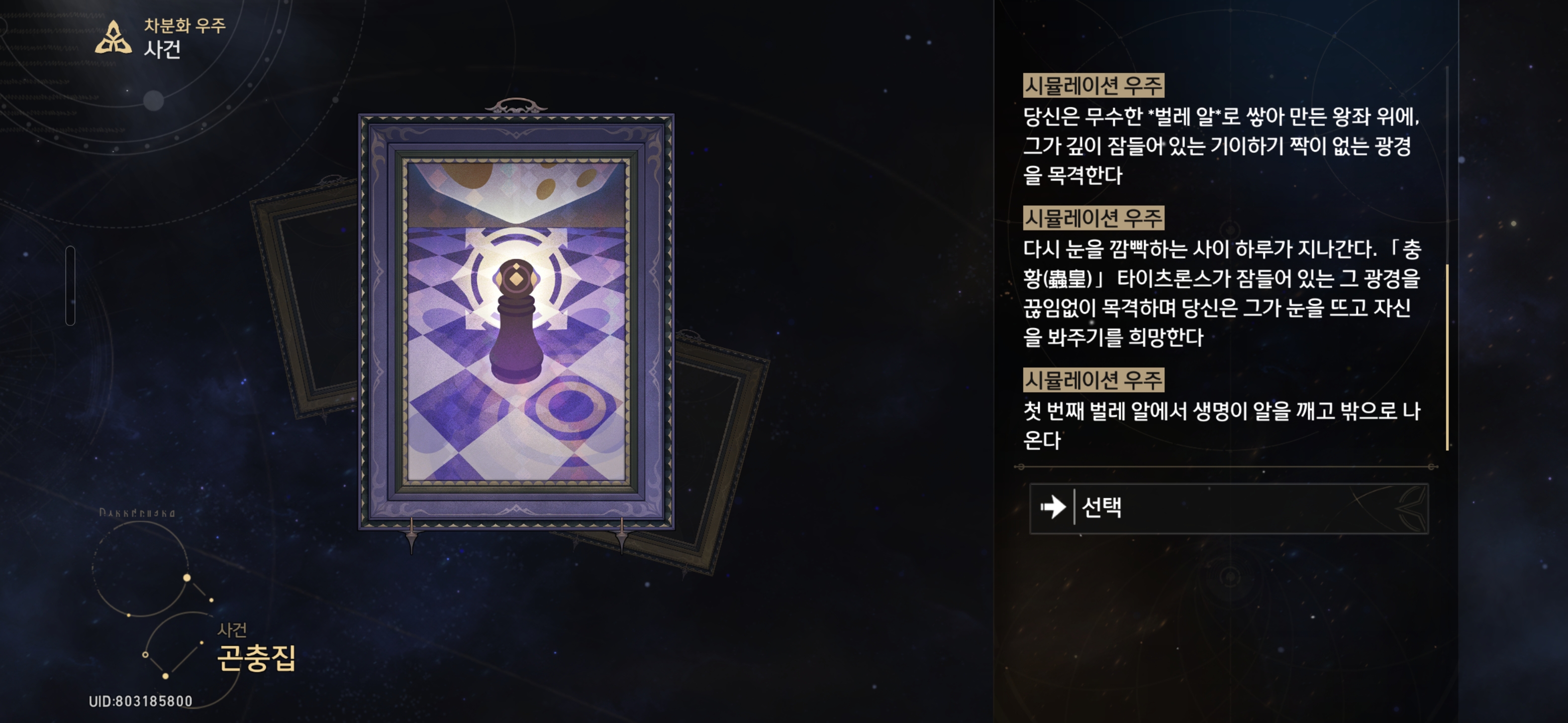 「충황(蟲皇)」 타이츠론스가 잠들어 있는 그 광경을 끊임없이 목격하며 당신은 그가 눈을 뜨고 자신을 봐주기를 희망한다
