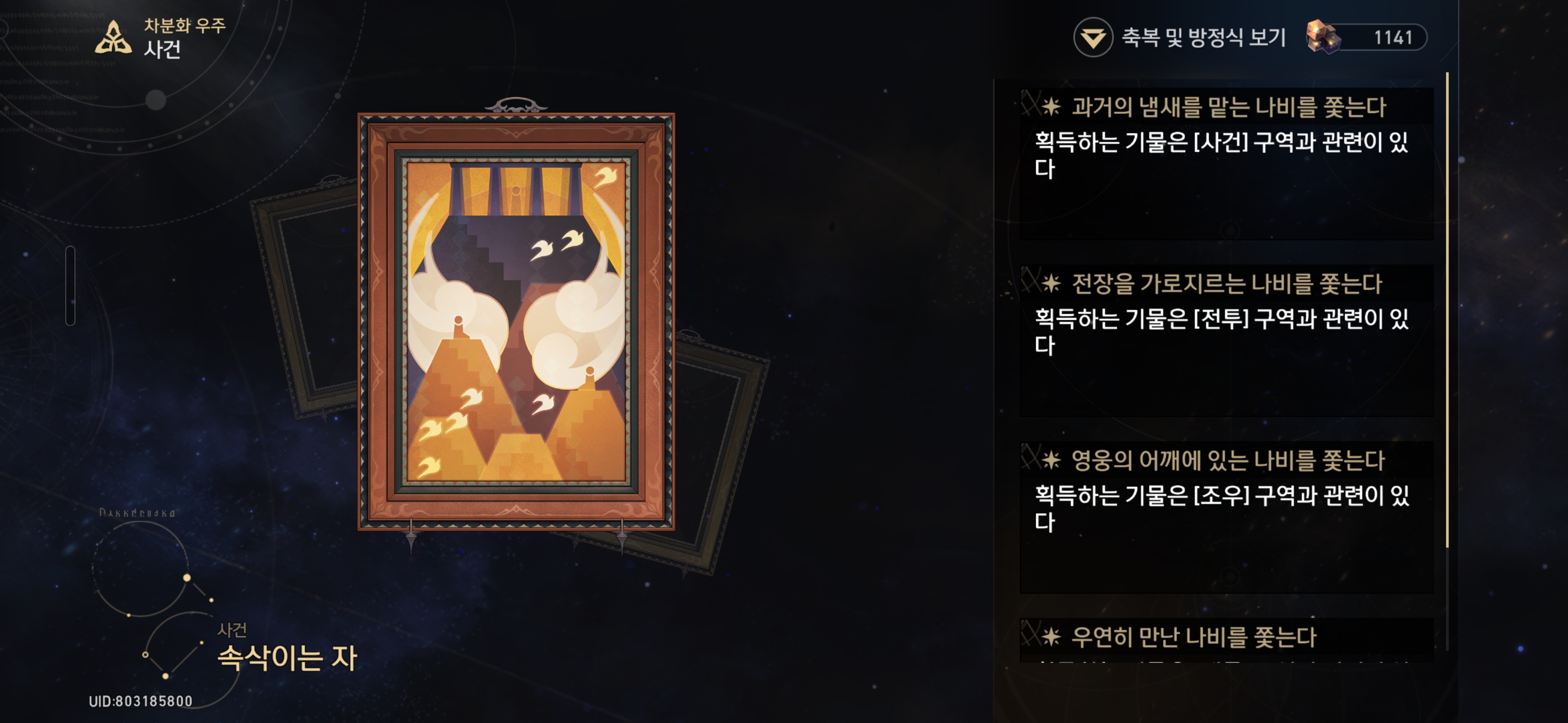 ▶과거의 냄새를 맡는 나비를 쫓는다 - 획득하는 기물은 [사건] 구역과 관련이 있다