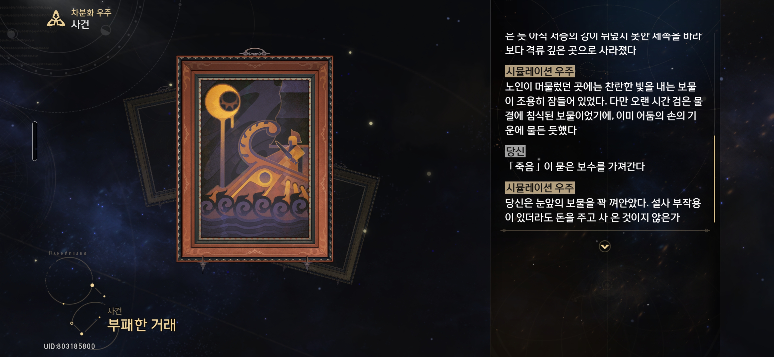 「고맙네, 친구」동전을 받은 노인은 미련이 남은 듯 아직 저승의 강이 뒤덮지 못한 세속을 바라보다 격류 깊은 곳으로 사라졌다