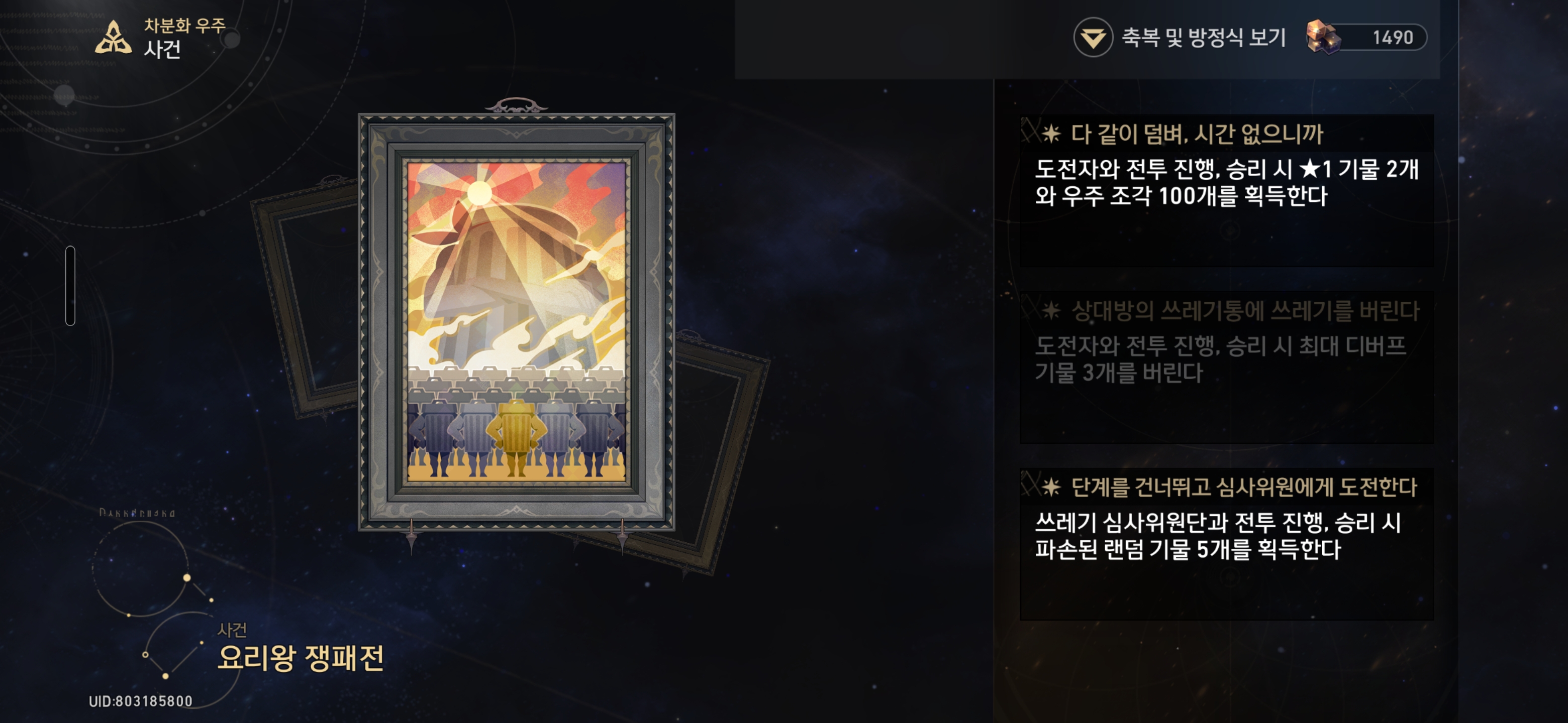 다 같이 덤벼, 시간 없으니까 - 도전자와 전투 진행, 승리 시 ★1 기물 2개 와 우주 조각 100개를 획득한다