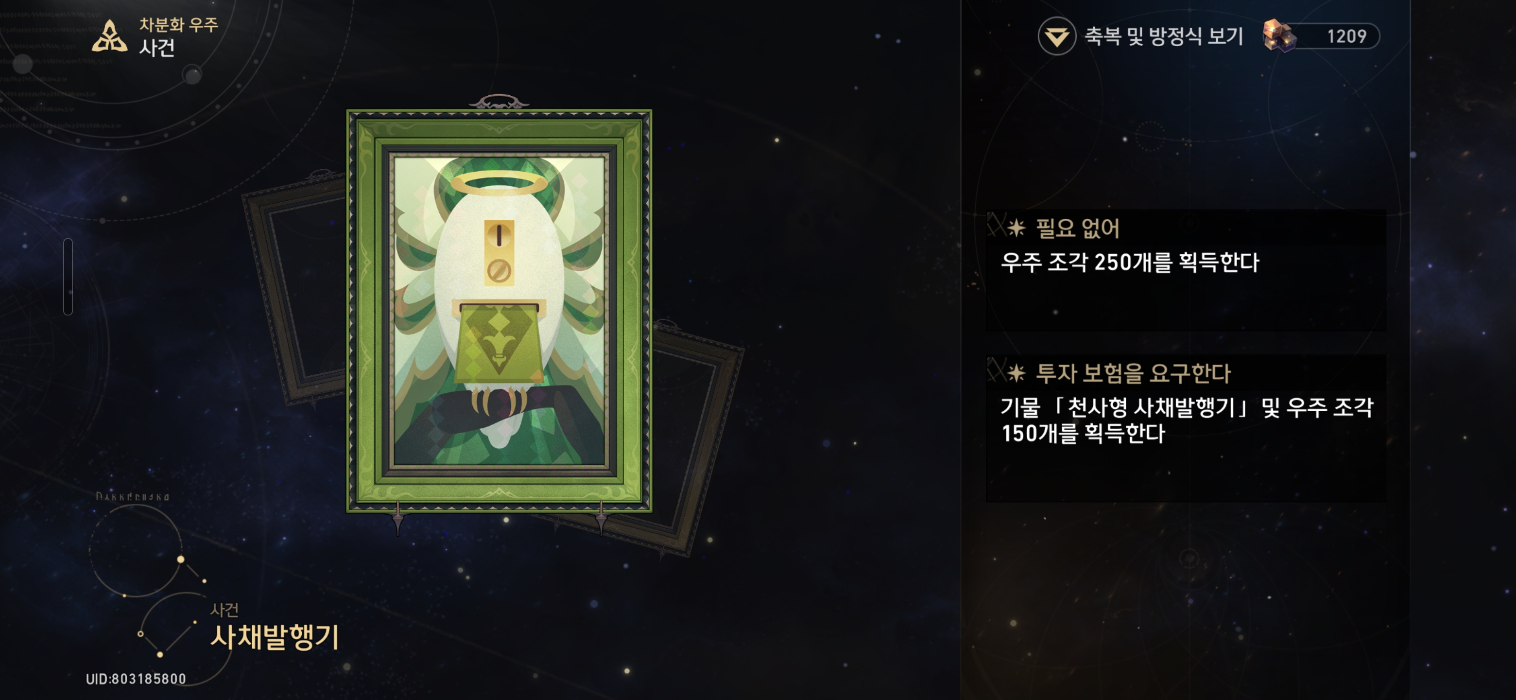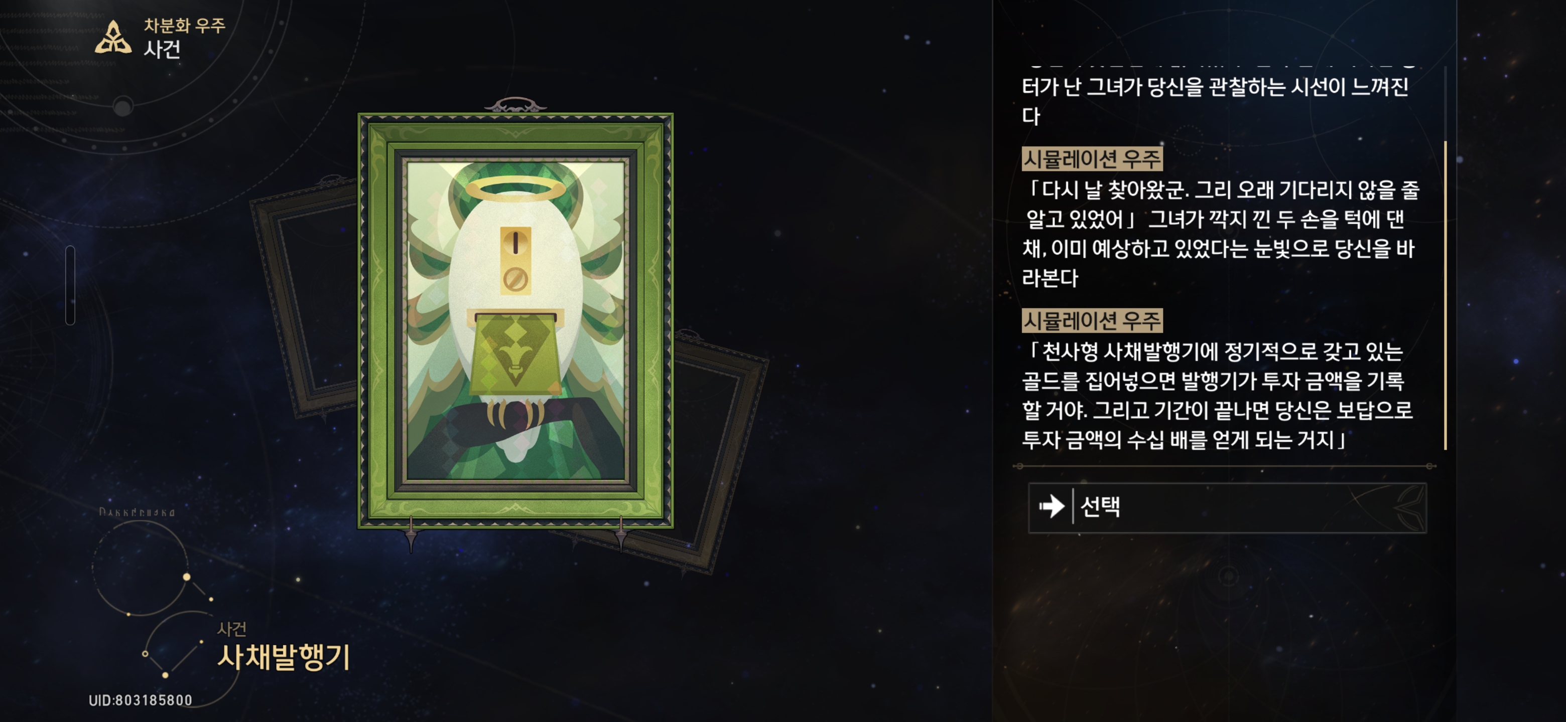 투자 보험을 요구한다 - 기물 「천사형 사채발행기」및 우주 조각 150개를 획득한다